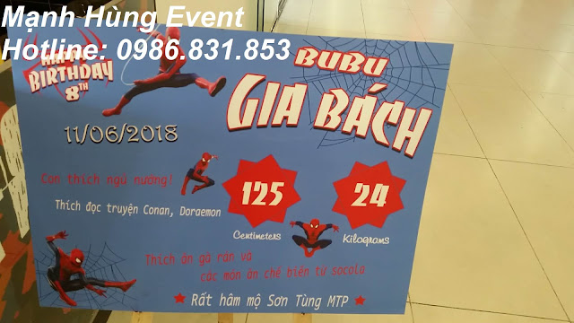Trong các bữa tiệc sinh nhật của bé thì ngoài việc trang trí sinh nhật sao cho đẹp, thức ăn sao cho ngon thì việc tổ chức sinh nhật của bé phải mang nhiều yếu tố vui vẻ và hài hước và một trong những cách để làm cho buổi tiệc của bạn trở nên vui nhộn và hài hước đầy ấm tiếng cười đó là thuê chú hề hoạt náo kiêm Mc của chương trình.Và tại tiệc sinh nhật 8 tuổi của Gia Bách - bố mẹ em đã tìm đến Mạnh Hùng Event chúng tôi để thực hiện trang trí sinh nhật cũng như thuê chú hề hoạt náo.Sinh nhật Gia Bách được trang trí theo chú đề Spider Man - Trường Tít là chú hề được Mạnh Hùng gửi tới tiệc sinh nhật Gia Bách, với kinh nghiệm hoạt náo trong các buổi tiệc sinh nhật - Trường Tít thực sự đã làm các bé tham gia buổi tiệc luôn vui nhộn tạo không khí vui tươi - hạnh phúc cho Gia Bách và gia đình của em.